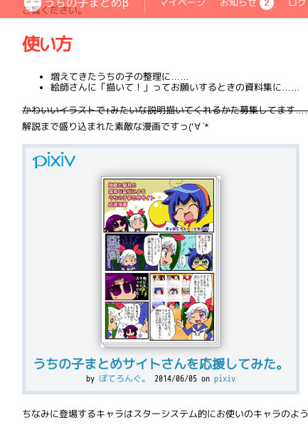 うちの子まとめβの「このサイトについて」のページで見ることができます。とっても可愛い&わかりやすい漫画なので、既に使い方を熟知されている方でもぜひご覧ください('ω`*